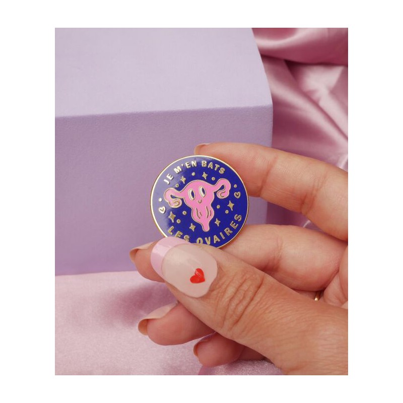 ✨ Pin's bleu, rose et doré à clipser incription "Je m'en bats les ovaires"