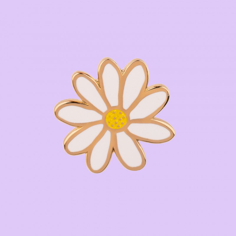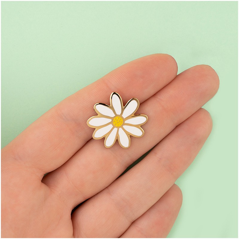 Une jolie petite pâquerette blanche et dorée, avec un pistil jaune à paillettes, qui trouvera sa place aussi bien sur votre tote bag que votre col de veste ! Pourquoi pas offrir le même pin’s fleur à votre meilleure amie en guise de bijou d’amitié ?