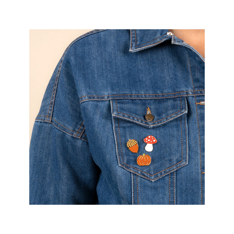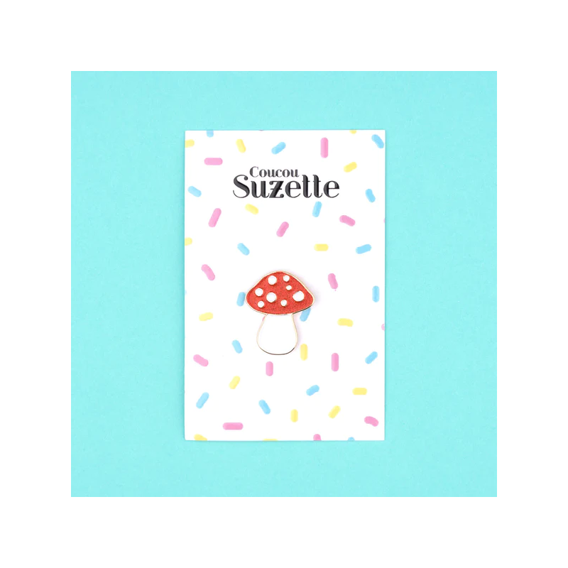 Ohlala, on fond devant ce petit champignon à paillettes ! Un joli pins rouge et blanc qui incarne l’automne mieux que personne. On le met sur le col de notre manteau et hop, nous voilà subtilement pimpé.e pour toute la saison.