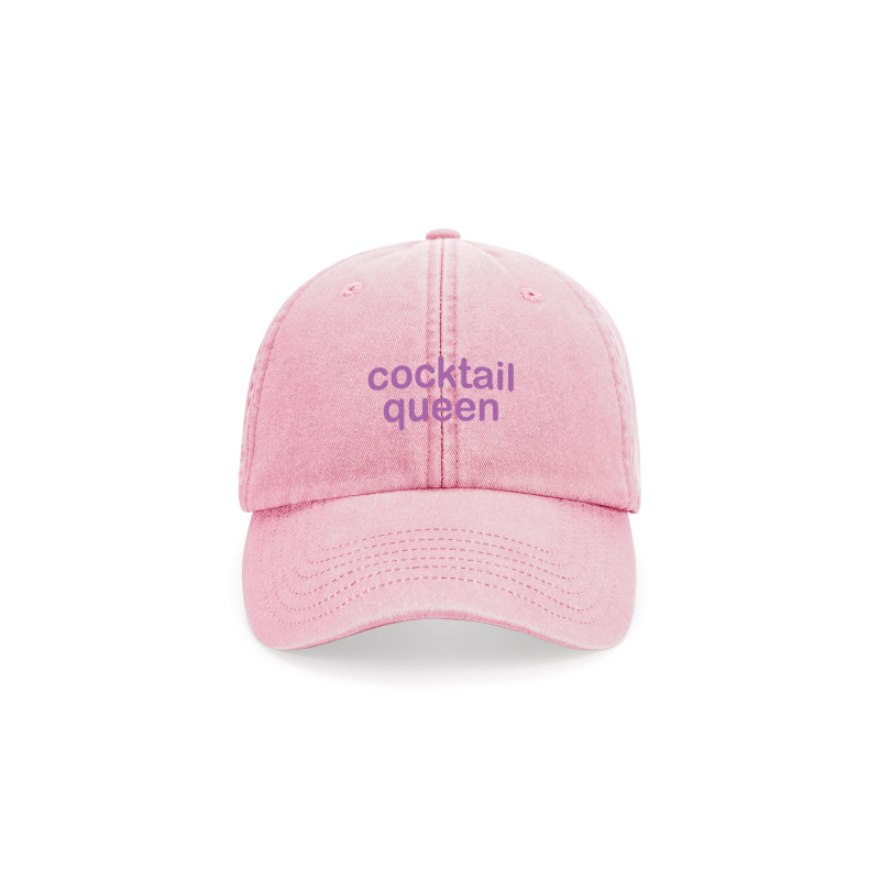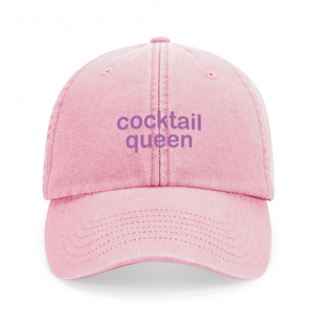 Casquette type baseball vintage rose avec une broderie trendy "cocktail queen" mauve.