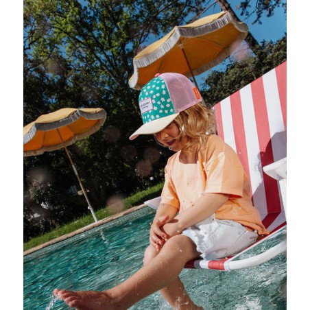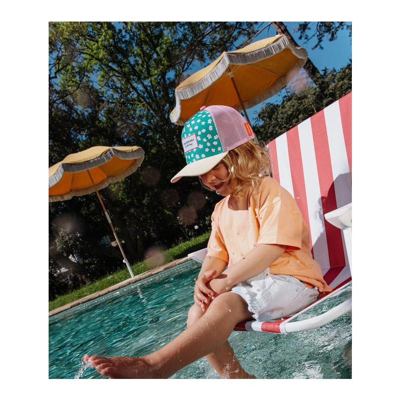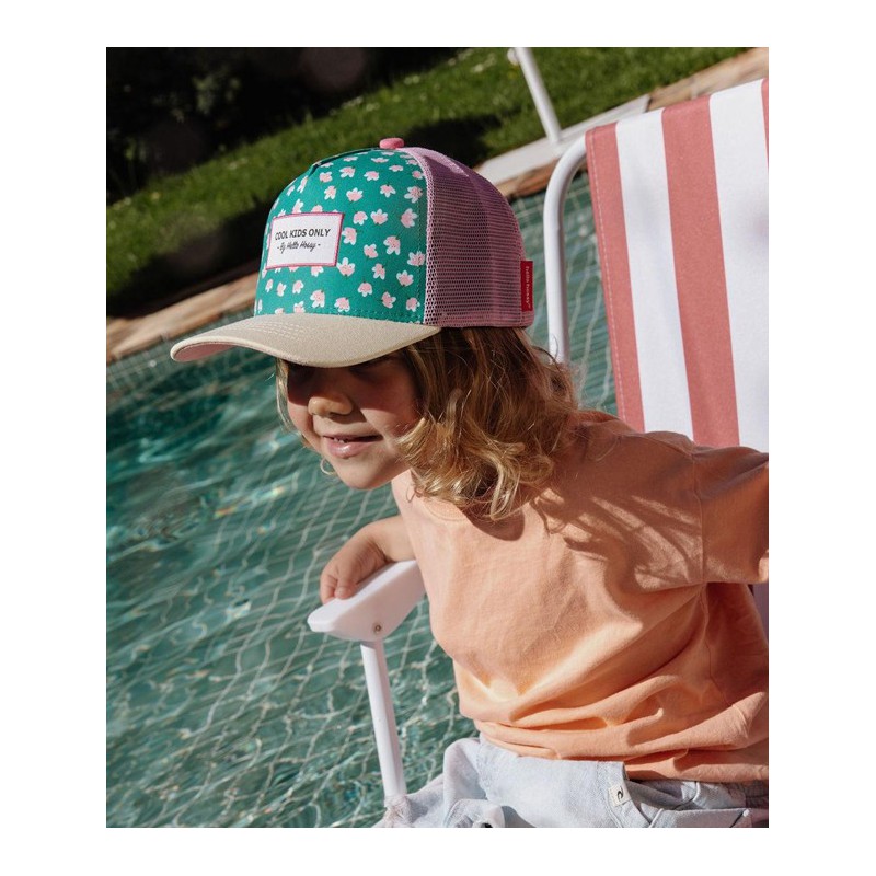 On adore la Casquette pour enfants et bébés, Garden Joy. Imprimé fleuri, style trucker, on aime ce modèle ! Une casquette colorée à visière courbée.