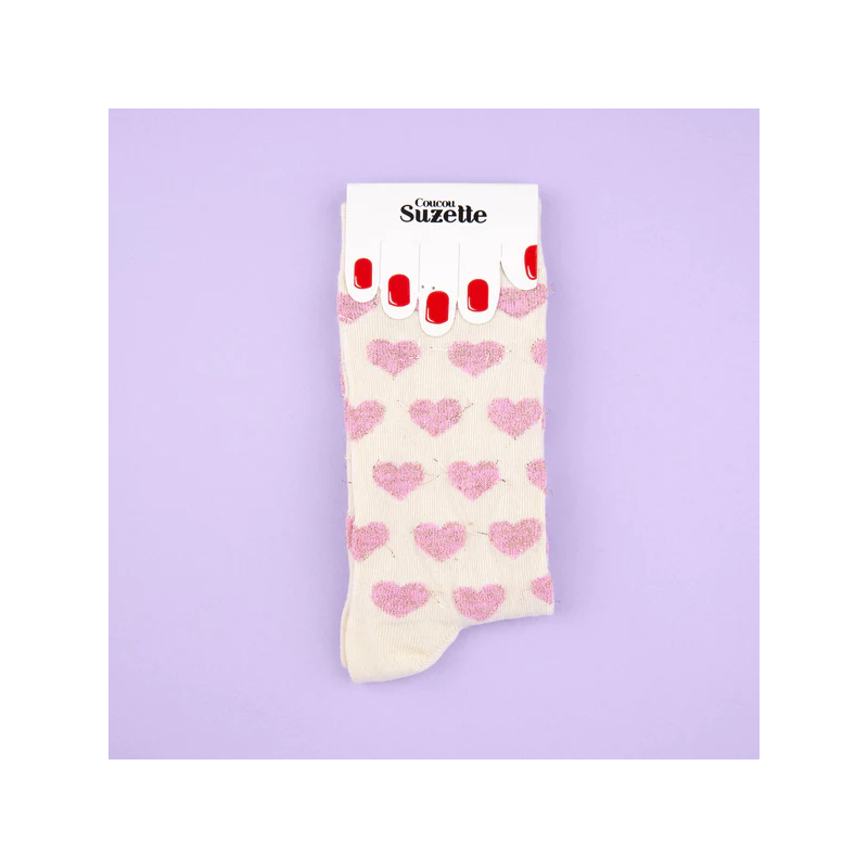 Des chaussettes coeur rose à paillettes : un accessoire pour faire briller nos petons et apporter du peps à nos baskets ! Et comme toujours chez Coucou Suzette, les chaussettes en coton sont douces et confortables pour être bien au chaud toute la journée.