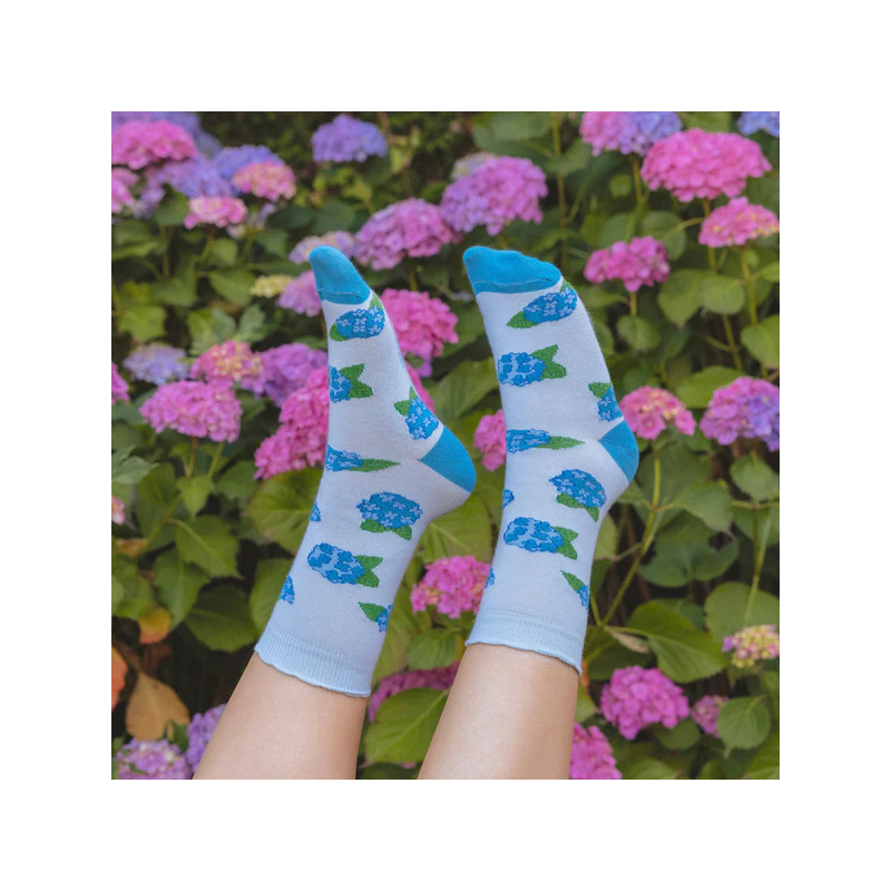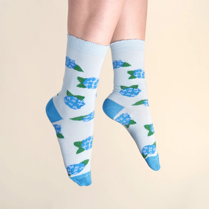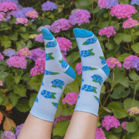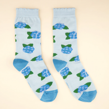 Qui a dit que les hortensias étaient des fleurs de mamie ? On remet au goût du jour ces petites chéries avec les chaussettes à motif. On craque pour leur côté rétro romantique, leur camaïeu de bleus, et leurs petites fronces tout autour de nos chevilles.