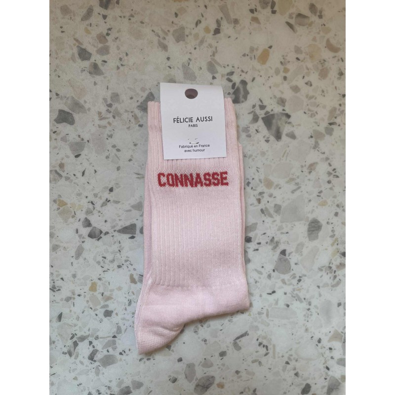 Chaussettes "Connasse" rose pâle/écriture rouge Félicie Aussi