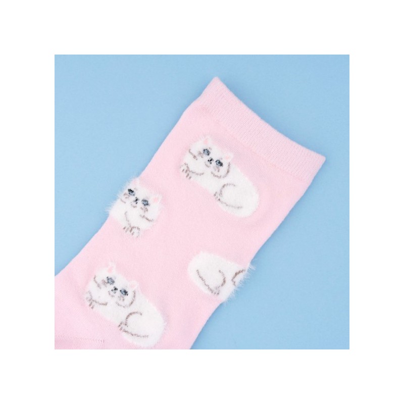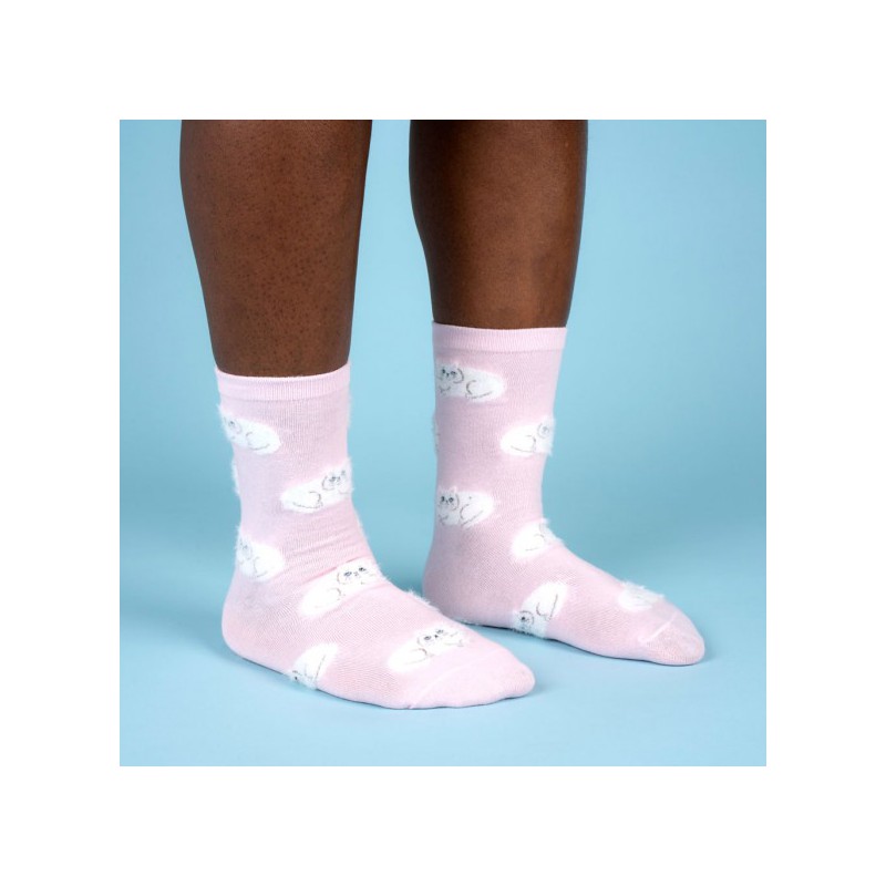 Des chaussettes chat persan en coton, moelleuses et cosy, couvertes de petits matous en boule sur un fond rose pâle tout doux. Le détail qu’on adore : le poil fluffy des chats qui les rends plus vrais que nature !