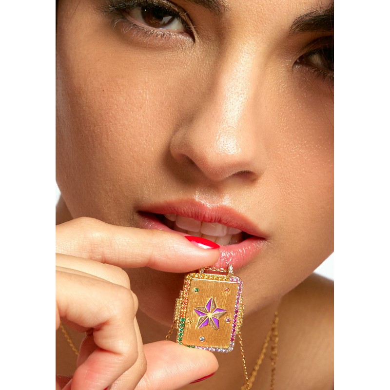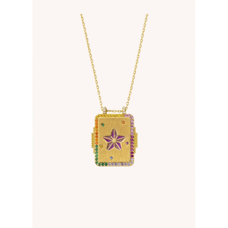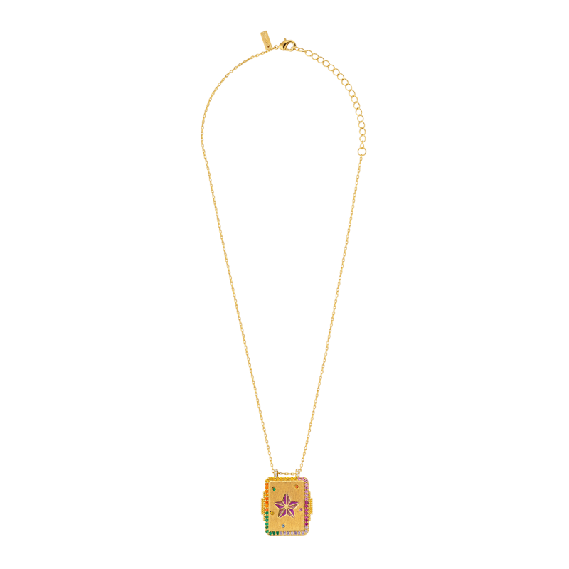 Le collier Boheme MYA-BAY, revisité dans une version carrée, vous plonge dans l’esprit du Texas avec son design raffiné en or brossé doré à l’or fin 24 carats.