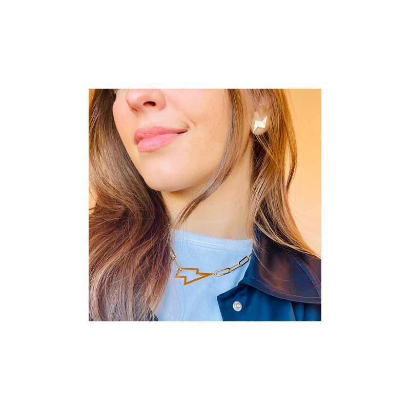 Le collier POWER en acier inoxydable doré 18 carats ou rhodié se compose d'une chaîne trombone ajustable et de son éclair vibrant.
