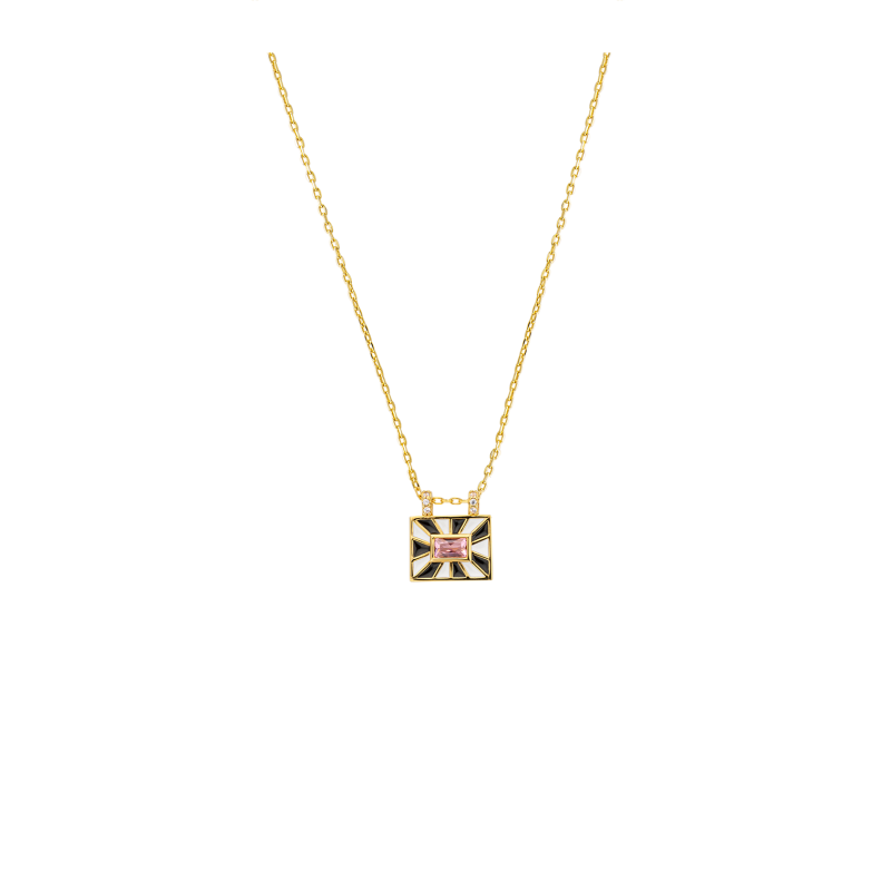 Le collier BLACK AND WHITE EL PASO de MYA—BAY est doré à l’or fin recyclé 24 carats. Ce modèle se distingue par son rectangle émaillé noir et blanc, au look graphique et ultra contemporain. Avec sa longueur de 38 cm + 5 cm d’extra-chaîne, il s’ajuste parfaitement à votre style du jour. Minimaliste mais percutant, il joue sur les contrastes et les lignes franches, pour un effet chic garanti. Ce collier existe aussi en version colorée avec les modèles RAINBOW, RUBY WATERMELON ou GREEN WATERMELON EL PASO — à choisir selon votre mood : graphique ou vibrant ?
