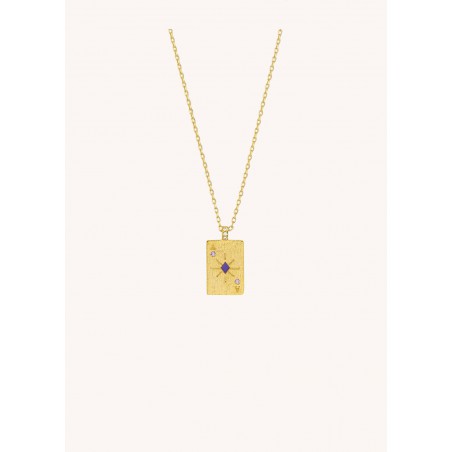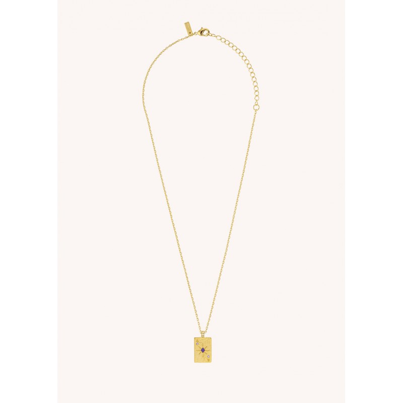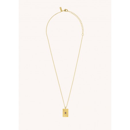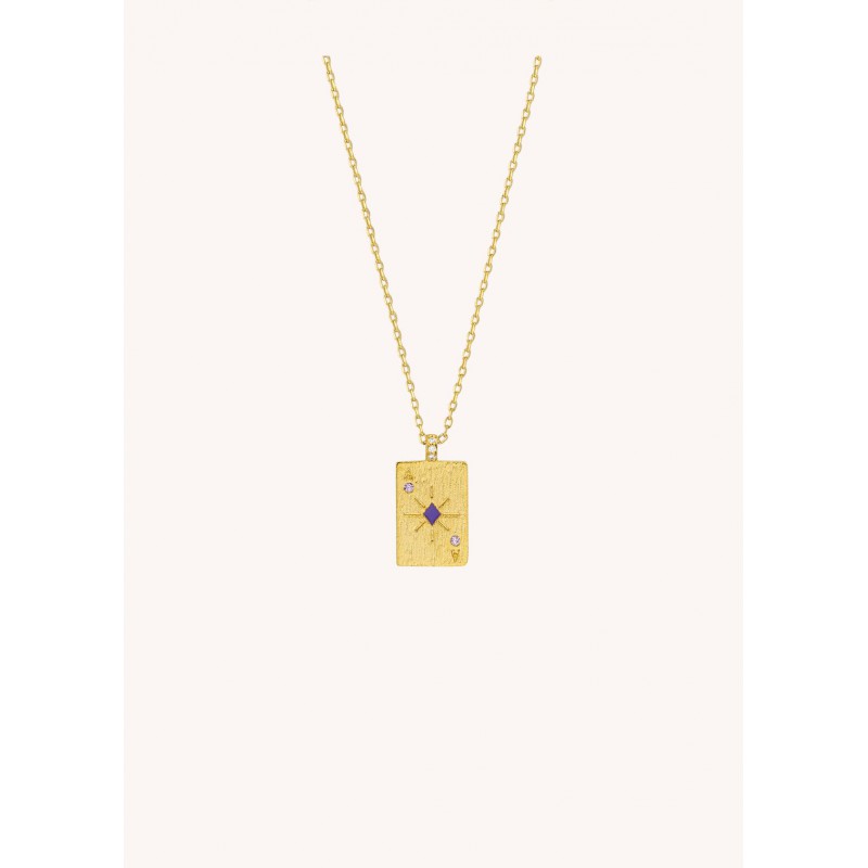 Le collier ACE OF DIAMONDS de chez MYA—BAY est doré à l’or fin recyclé 24 carats. Inspiré de la carte du Carreau, son pendentif représente les personnalités brillantes, réfléchies et organisées.