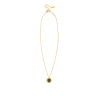 Le collier BLACK FLOWER de MYA—BAY, doré à l’or fin recyclé 24 carats, est un bijou délicat à l’aura discrètement magnétique.