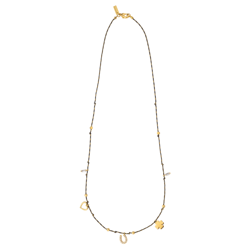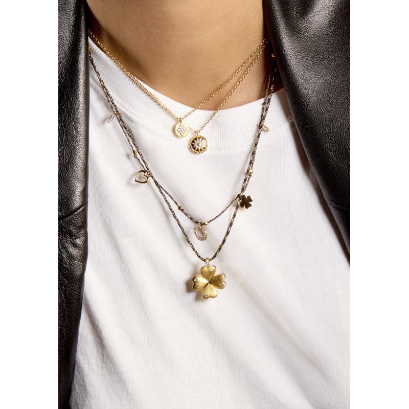 Porté en ras-de-cou sur son cordon noir, il mêle chance, amour et good vibes dans un design ultra stylé. Une touche d’énergie positive à glisser autour du cou pour affirmer ton mood.