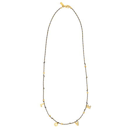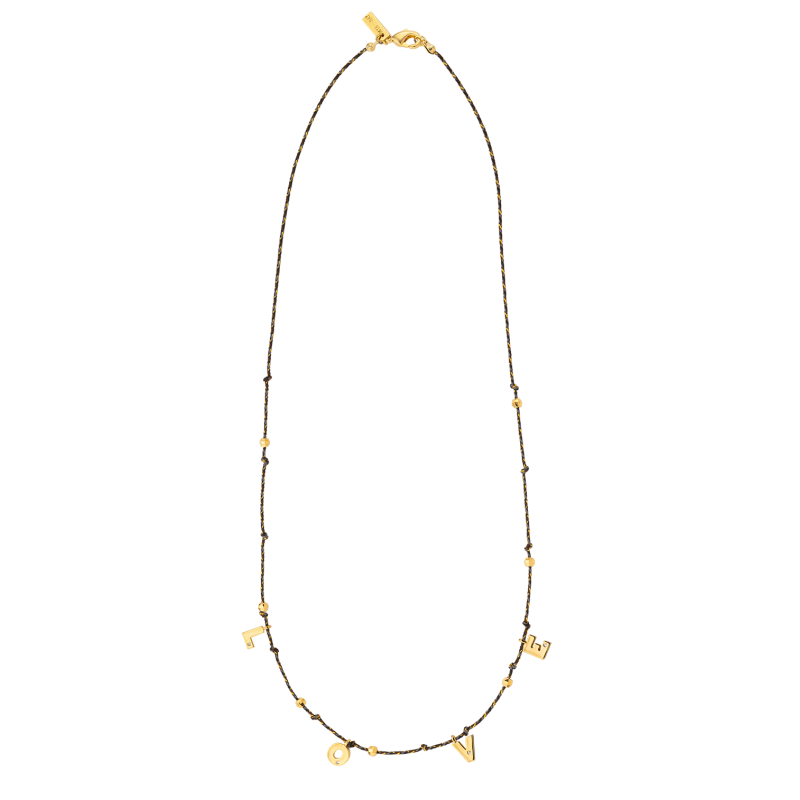 Le collier LOVE LIBERTY de MYA—BAY, doré à l’or fin recyclé 24 carats, affiche la couleur : LOVE.
