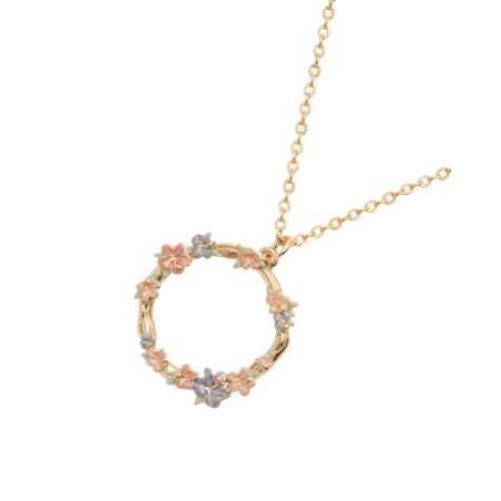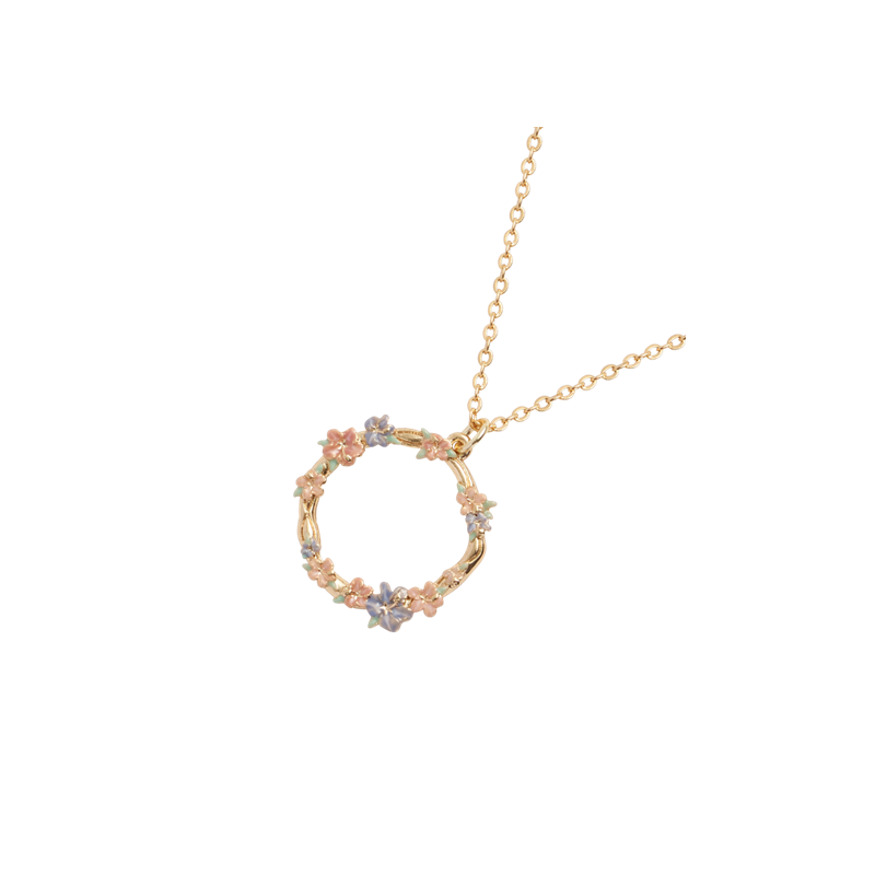 Ornez votre cou de pétales symbolisant la passion. Ce collier Hibiscus est orné de fleurs en émail peintes à la main dans des tons pastel doux, formant un cercle parfaitement imparfait. Le pendentif est suspendu à une chaîne réglable en plaqué or.
