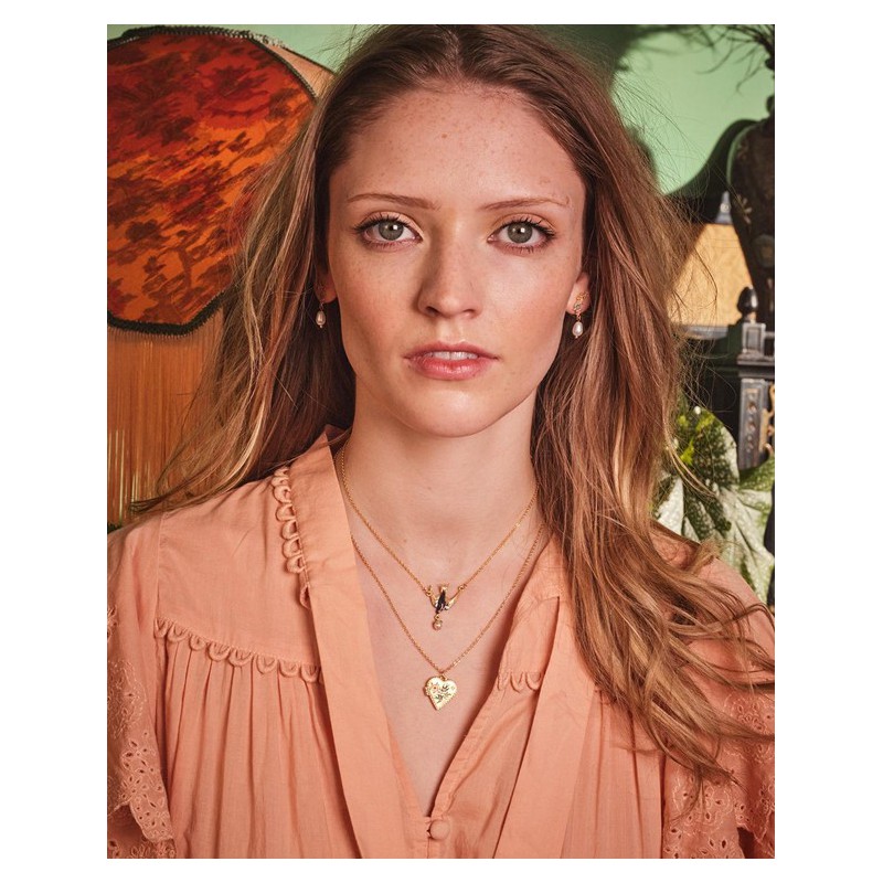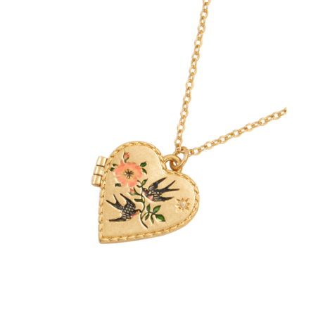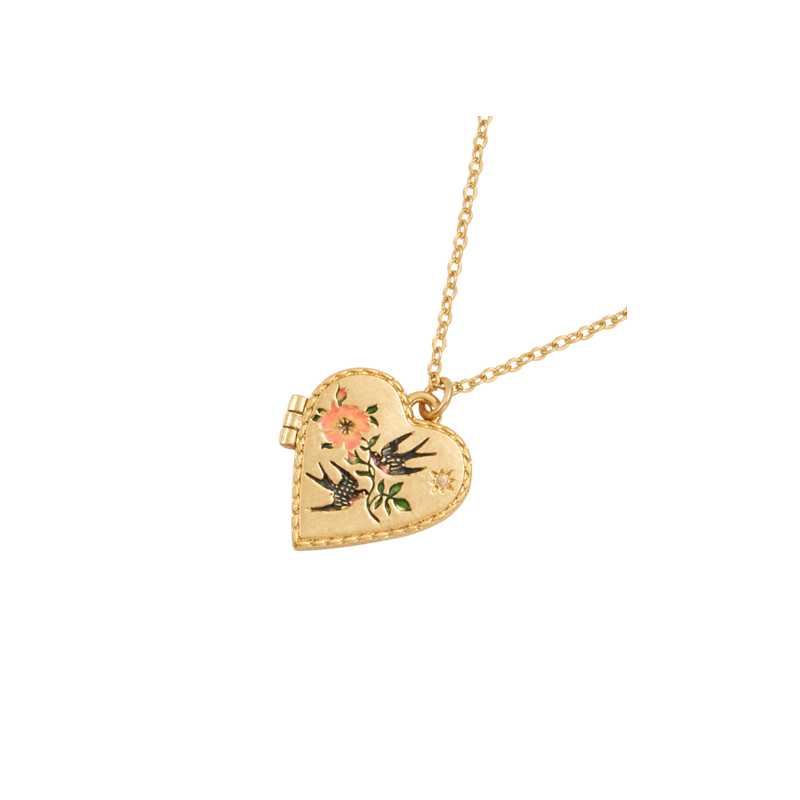 Gardez près de vous des photos de vos proches et de précieux souvenirs grâce à ce médaillon Hirondelle en forme de cœur. Ce charmant bijou plaqué or est méticuleusement sculpté et peint à la main, ce qui rend chaque pièce véritablement unique.