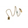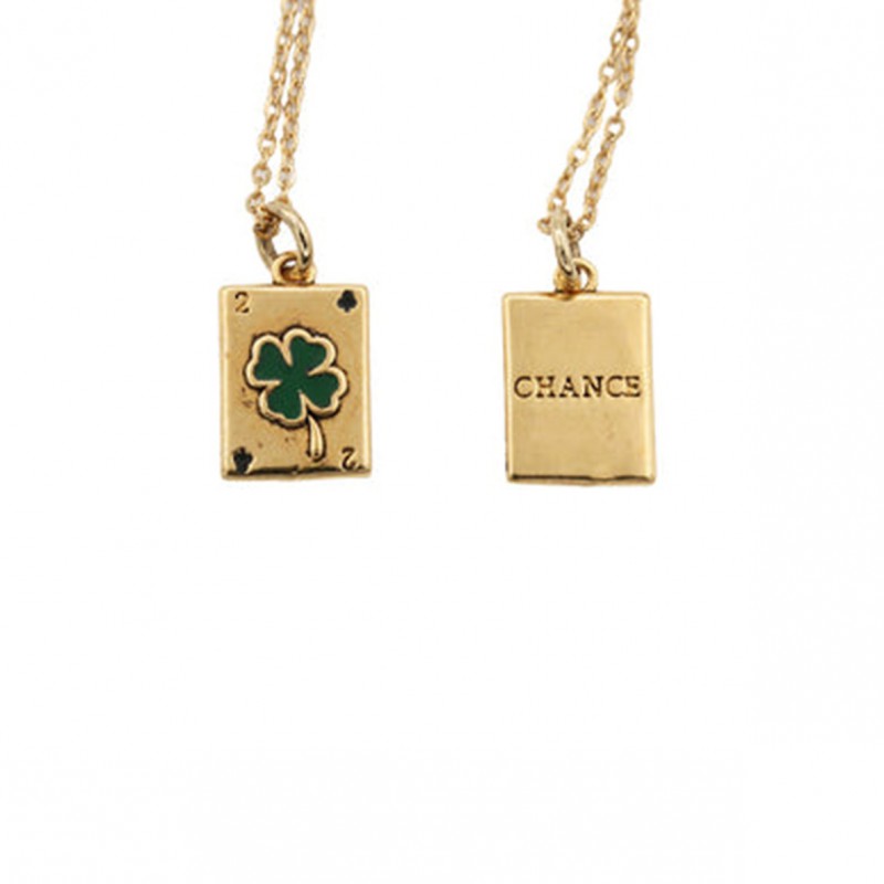 Collier en laiton bain d’or, 1 micron d’or 999/1000, émail et pierres semi précieuses. Modèle recto verso. Symbole au recto et message au verso. - Trèfle / Chance, Longueur de la chaine ajustable de 40 à 45 cm. Pendentif : 1,5 / 1 cm.