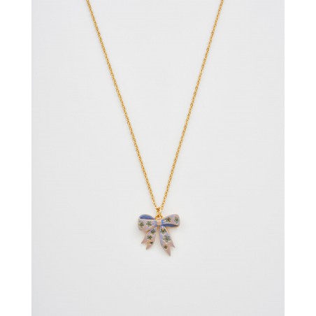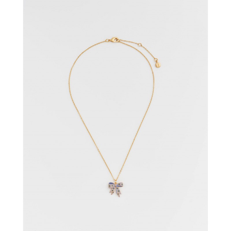 Le collier pendentif nœud papillon capture la grâce d'un ruban et le charme intemporel de la simplicité. Peint à la main en émail doux et orné d'un plaquage or vieilli, ce ravissant pendentif nœud papillon repose élégamment sur une fine chaîne, apportant une touche de fantaisie et de sophistication qui sublimera toutes les occasions.