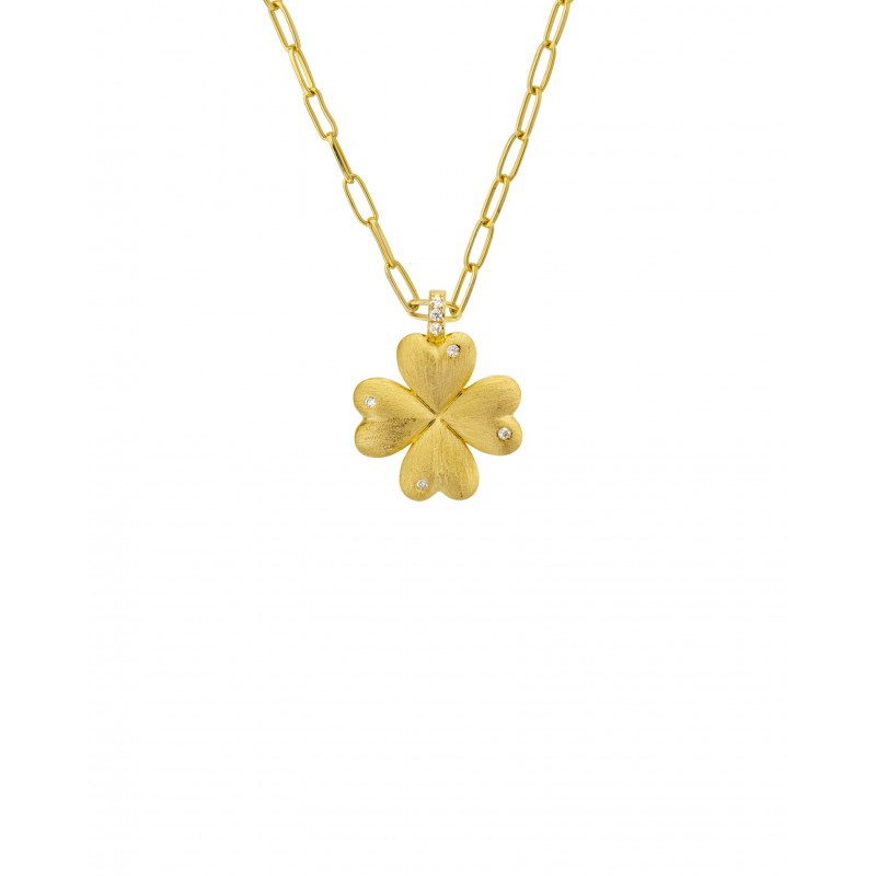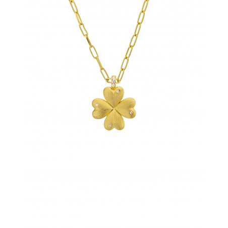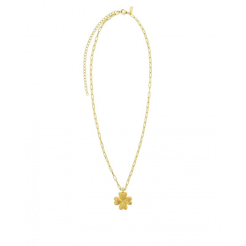Le collier LUCKY BABY CHAIN de MYA—BAY revisite l’un de nos modèles iconiques dans une version encore plus précieuse. Déclinaison du célèbre Lucky Baby, il conserve son pendentif en forme de trèfle en or brossé, symbole de chance et de positivité, cette fois-ci monté sur une chaîne élégante.