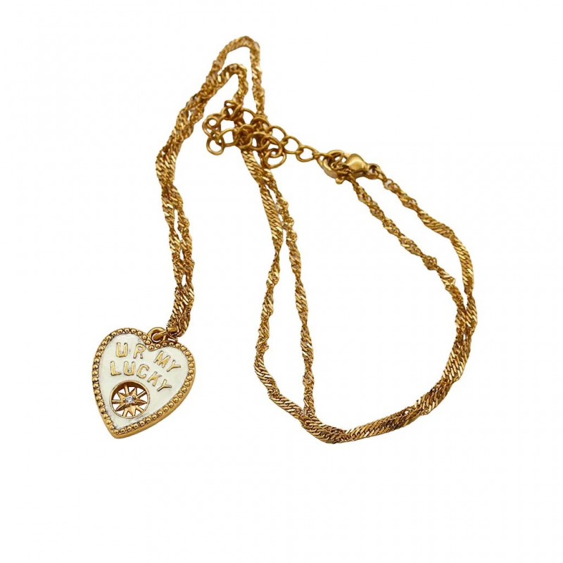 Longueur de la chaine 42 cm. Médaille coeur 2 cm / 1,5 cm.