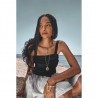 Collier en laiton bain d’or, 1 micron d’or 999/1000, et émail et strass de crystal Swarovski.