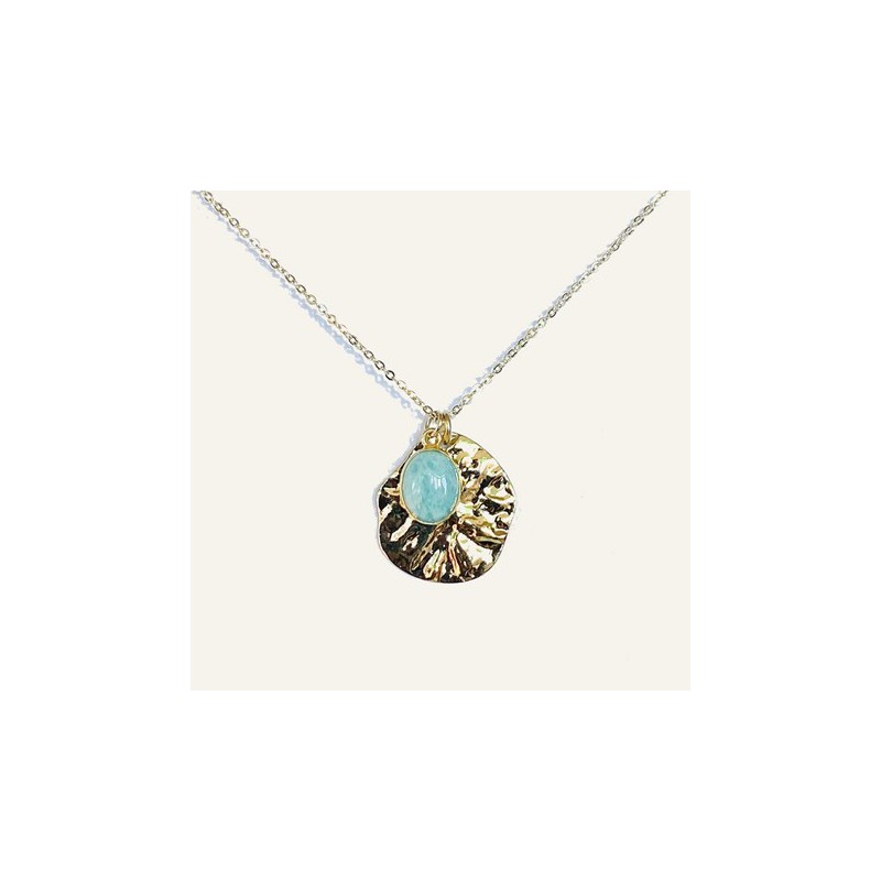 Découvrez l’élégance raffinée du Collier Maurice, doré à l'or fin et composé de pierres naturelles, amazonite.  Sa chaîne délicate, ajustable de 45 à 50 cm, sublime chaque tenue avec grâce et sophistication.