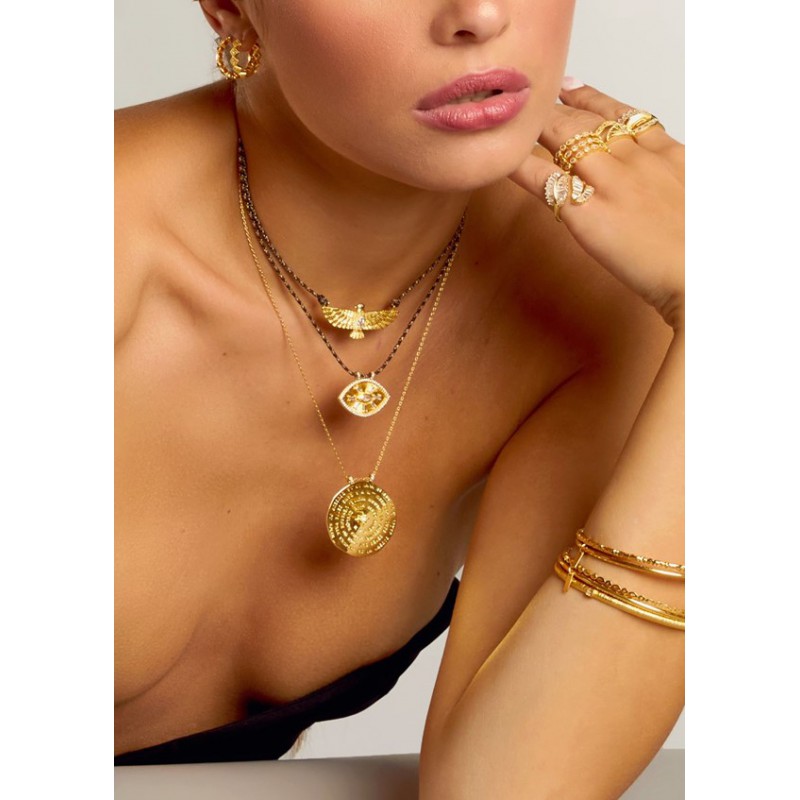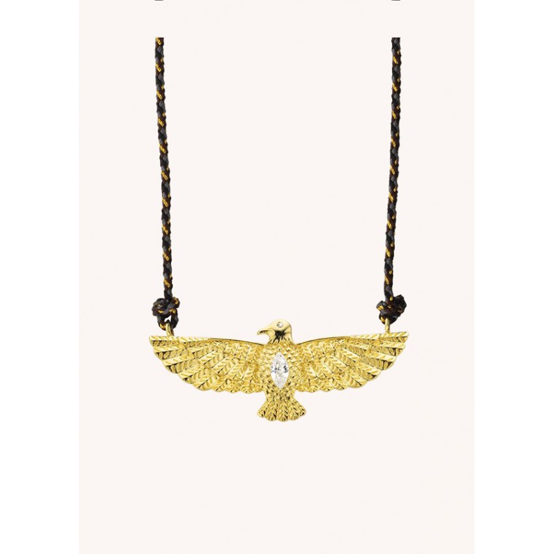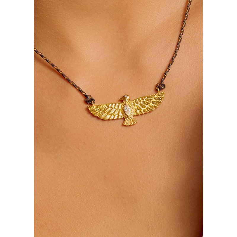 Arborez la puissance majestueuse d'un aigle avec ce pendentif, suspendu à un cordon tressé aux nuances dorées, grises et noires. Ce collier MYA BAY capture l'esprit et ajoute une touche de tendance à votre style quotidien.