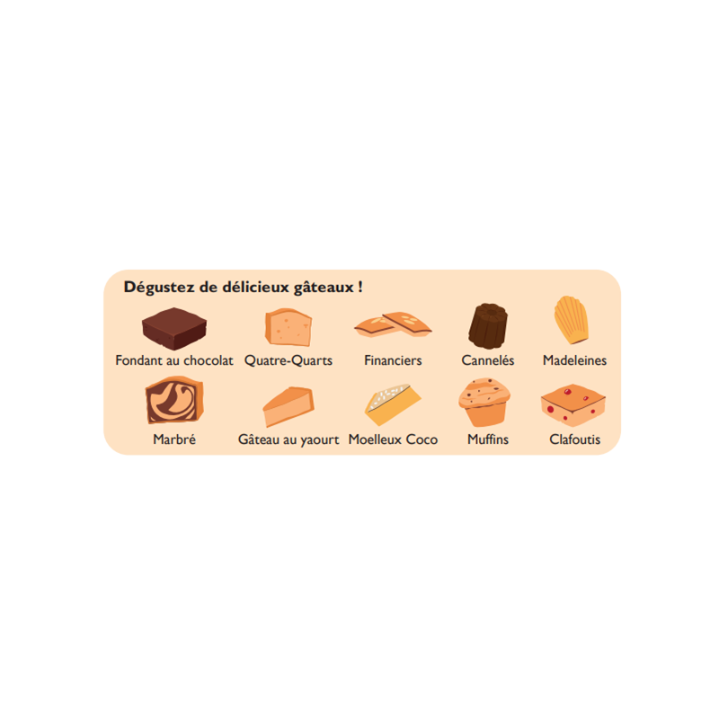 10 pâtes à gâteau super simple (Fondant au chocolat, Quatre-Quarts, Financiers, Cannelés, Madeleines, Marbré, Gâteau au yaourt, Moelleux coco, Muffins, Clafoutis) :