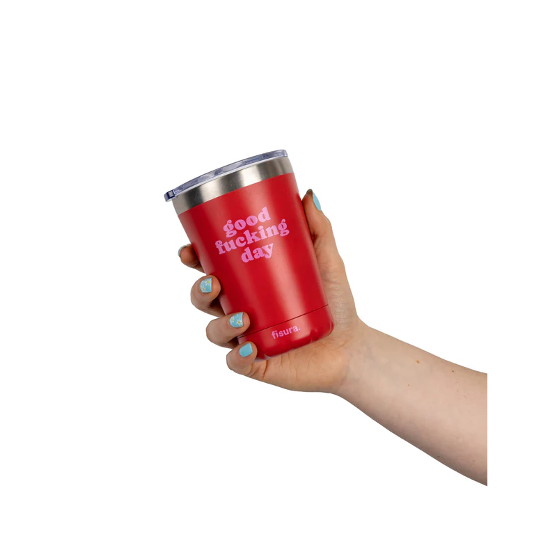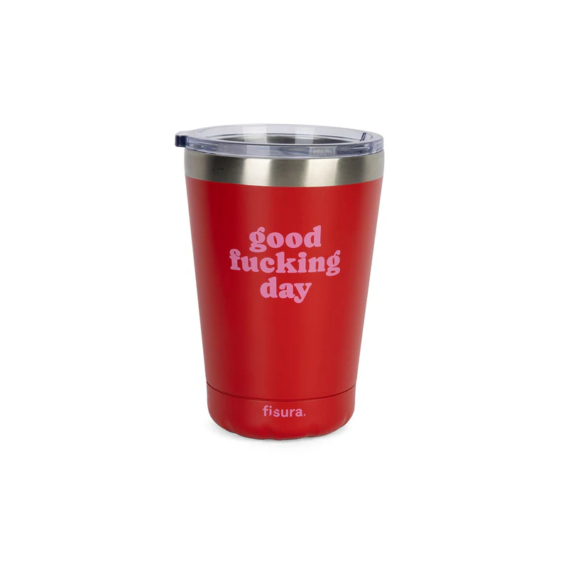 Préparez-vous à donner une touche fraîche et colorée à vos matins avec ce verre à café thermique ! Avec ses couleurs rouge et rose, il gardera non seulement votre boisson au chaud, mais ajoutera également de l'originalité à votre routine matinale. De plus, avec son message « Bonne putain de journée » vous souhaiterez une bonne journée (à votre manière) à toutes les personnes que vous rencontrerez. Vous êtes sûr de les faire sourire !