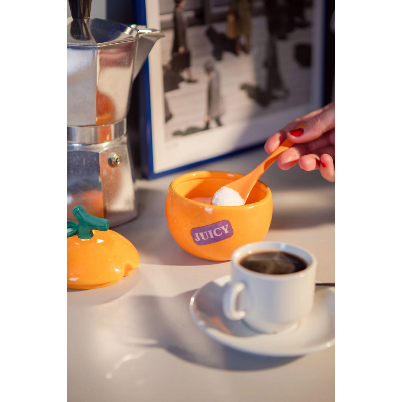 Sucrier en céramique, en forme d'orange, qui respire l'essence animée d'un marché fermier avec son allure vibrante et étonnante.