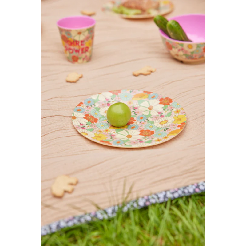 La fameuse assiette ronde Rice en mélamine, version jolies fleurs et girl power. La mélamine est durable et idéale au quotidien grâce à sa solidité et à sa facilité de nettoyage. Elle ne s’imprègne ni des odeurs ni de la couleur des aliments – ce qui rend cette assiette à la fois fun et pratique ! Veuillez noter que cet article ne convient pas pour un usage au micro-ondes.
