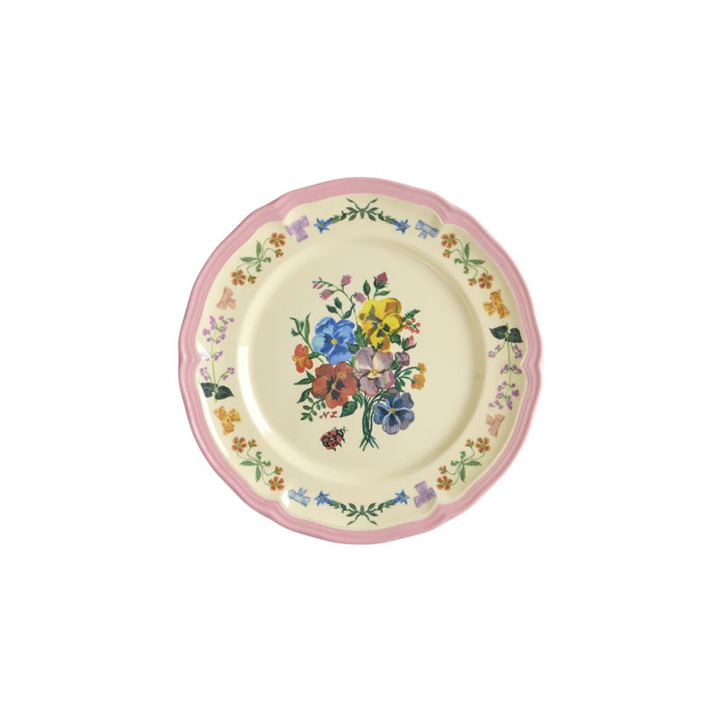 Une collab de rêve… Rice x Nathalie Lété – ensemble ils transforment l’ordinaire en de petits moments magiques… une assiette à la fois ! Cette merveilleuse petite assiette possède une bordure d’inspiration vintage et un bouquet de fleurs en son centre. Elle est fabriquée en mélamine qui est durable et idéale au quotidien grâce à sa solidité, sa facilité de nettoyage et sa capacité à ne s’imprégner ni des odeurs ni de la couleur des aliments. Veuillez noter que cet article n’est pas conçu pour un usage au micro-ondes.