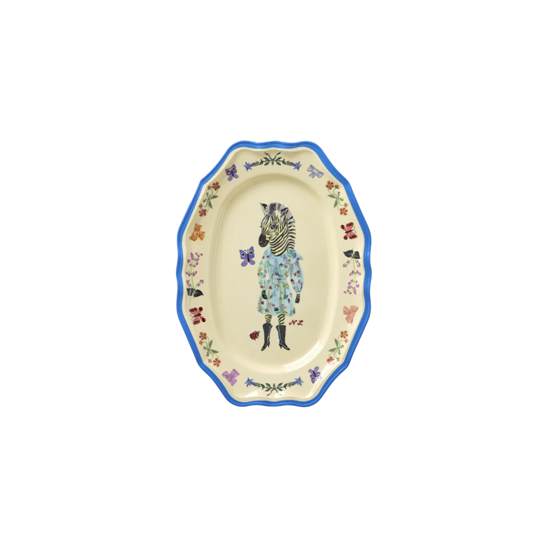 Servez de délicieux dîners dans ce plat d’inspiration vintage. Il regorge de fun et de magnifiques détails – comme ce zèbre particulièrement bien habillé… entièrement dessinés par Nathalie Lété. Ce plat est fabriqué en mélamine et mesure 19 x 26 cm, une belle contenance pour un maaaax de bonnes choses ! La mélamine est durable et idéale au quotidien grâce à sa solidité, sa facilité de nettoyage et sa capacité à ne s’imprégner ni des odeurs ni de la couleur des aliments.