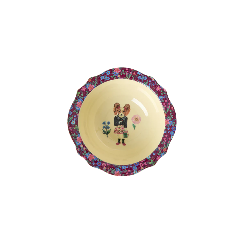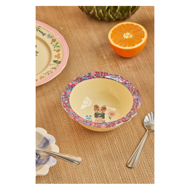 Nous sommes complètement fous de cette assiette creuse ! Elle a été conçue en collaboration avec Nathalie Lété et est inspirée de pièces vintage. Le chien élégant au centre et les rebords fleuris la rendent parfaite pour une petite salade, présenter une jolie fleur ou des bonbons. Elle est fabriquée en mélamine, un matériau durable et idéal au quotidien grâce à sa solidité, sa facilité de nettoyage et sa capacité à ne s’imprégner ni des odeurs ni de la couleur des aliments. Veuillez noter que cet article n’est pas conçu pour un usage au micro-ondes.