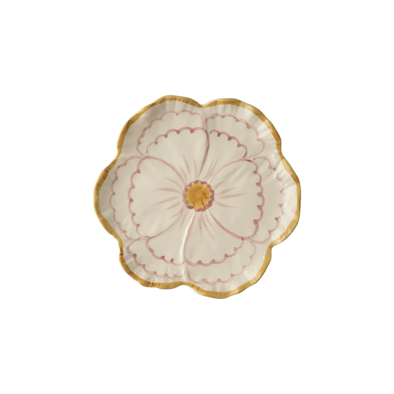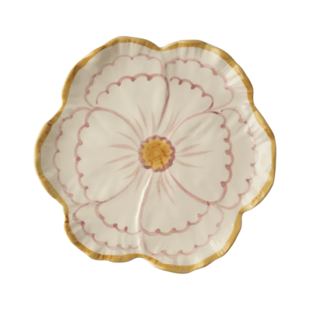 Dressez une table magnifique grâce à cette belle assiette en forme de fleur, qui peut aussi être utilisée comme petit plateau. Elle est décorée de détails jaunes et roses peints à la main au Portugal par un groupe de femmes extraordinaires. C’est pourquoi, il n’y en a pas deux pareilles ; chacune est vraiment une pièce unique.