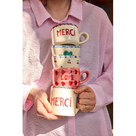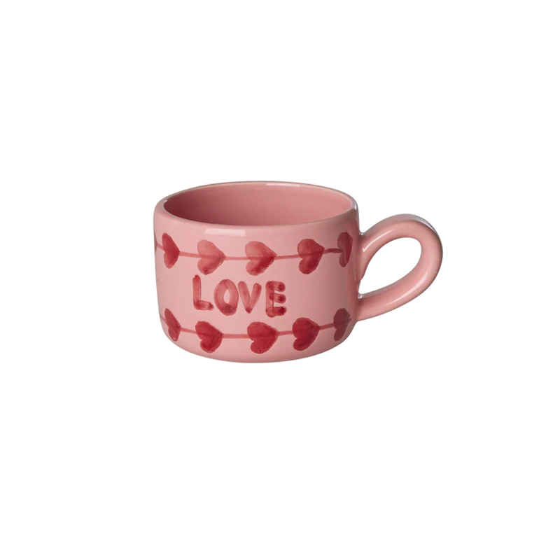La plus jolie des tasses à café avec une jolie guirlande de cœurs et le mot « love » au centre. Cette tasse est aussi unique que vous l’êtes. Elle a été peinte à la main au Portugal par des artisanes incroyables, ce qui la rend unique et lui donne un charme fou !