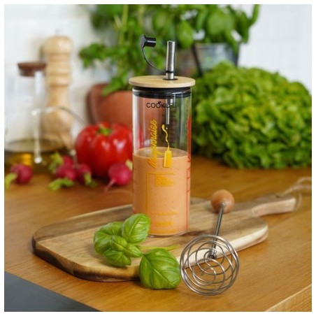 Mélangez avec le fouet spécial pour obtenir une parfaite émulsion très rapidement.