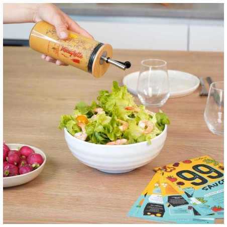 Avec ce shaker, oubliez les sauces industrielles et préparez super facilement 99 sauces délicieuses, classiques ou originales, pour vos salades, viandes, poissons, apéros !