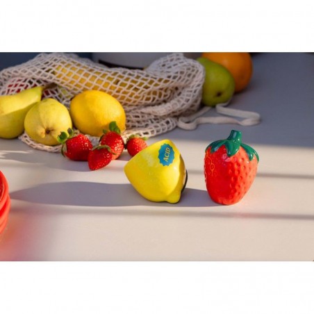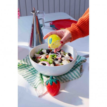 Un ensemble de salières et de poivrières en céramique, conçues en forme de citron et de fraise, pour retrouver l’essence vivante d’un marché avec leur allure vibrante et accueillante.