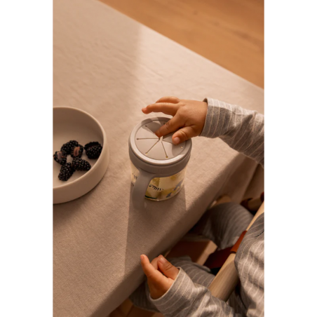 Indispensable pour des collations pratiques partout, le gobelet à en-cas ENYO est équipé d'une membrane en silicone douce qui permet à votre enfant de plonger la main dans le gobelet pour prendre une bouchée. Le récipient en tritan transparent, orné de motifs ludiques, permet à votre enfant de voir l'intérieur du gobelet, tandis que le couvercle assure qu'aucun aliment ne tombe lorsque le gobelet est dans le sac ou la poussette.