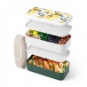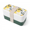 100% recyclable, son couvercle intermédiaire intègre un joint scellé, qui lui assure une étanchéité parfaite mais aussi une hygiène optimisée et un nettoyage simplifié. Il est composé de deux récipients hermétiques de 500 ml chacun et d’un élastique assurant un transport en toute sérénité́. Le tout sans BPA, conformément à la réglementation.