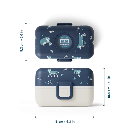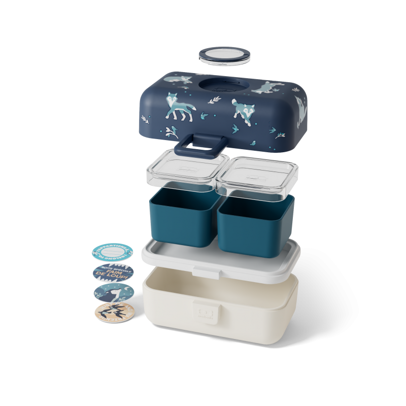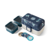 École, salle de jeux, plein air : la lunch box monbento® Tresor s’emporte partout... Tout en protégeant le contenu des folles aventures des gourmets en culottes courtes ! Idéal pour apprendre aux enfants les bienfaits d’une alimentation saine, monbento® l’a pensé comme un compagnon solide et amusant ; un coffre précieux au contenu délicieux. Cette lunch box pour enfants inclut un récipient de 500 ml compatible avec le micro-ondes (sans le couvercle), ainsi que deux petites caissettes de 150 ml chaucune pour le dessert, l'entrée ou un petit encas. Son couvercle supérieur peut même être personnalisé selon les préférences de son petit propriétaire grâce aux 4 vignettes incluses !