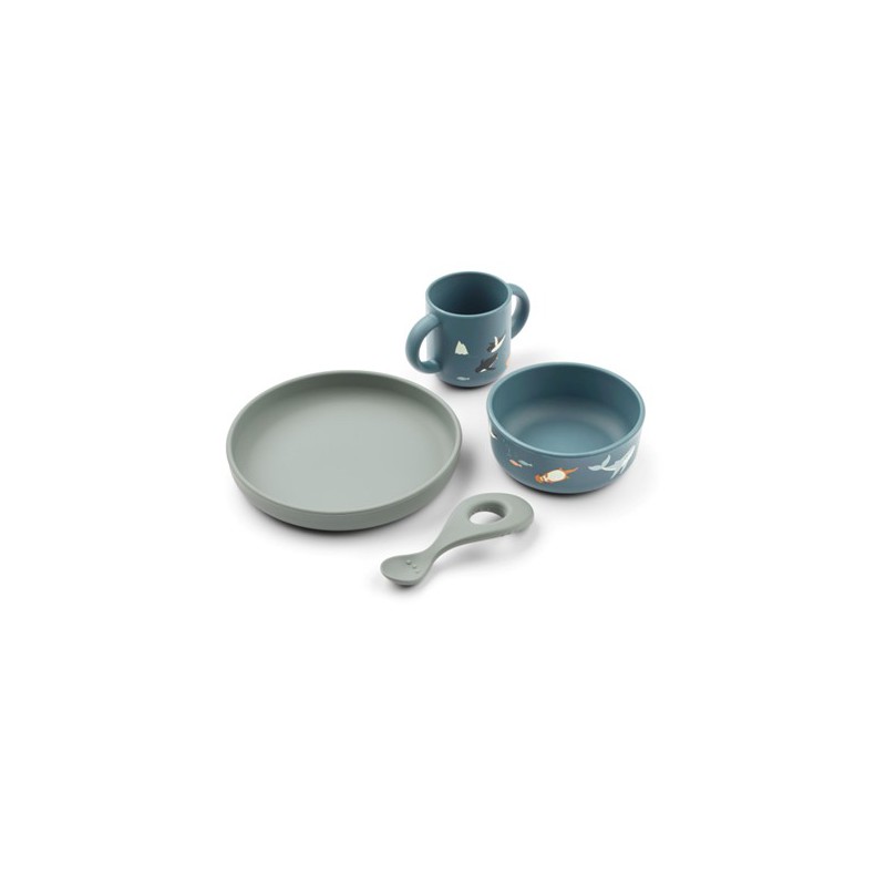Toute la vaisselle la plus populaire rassemblée dans un ensemble pratique. Fabriqué en silicone durable et de haute qualité, le set de vaisselle Vivi est à la fois incassable et passe au lave-vaisselle. Il se compose d'une tasse, d'un bol, d'une assiette et d'une cuillère, garantissant que votre petit est prêt pour ses aventures culinaires.