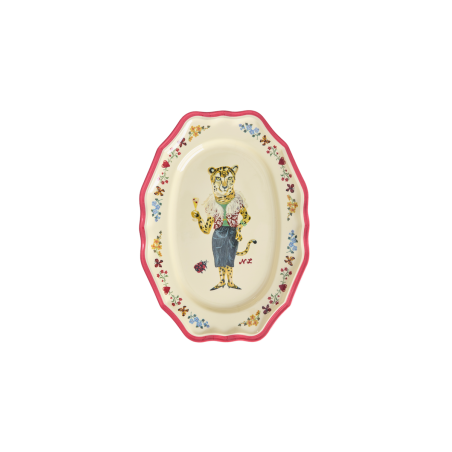 Servez de délicieux dîners dans ce plat d’inspiration vintage. Il est décoré de magnifiques détails et d’une diva léopard… entièrement dessinés par Nathalie Lété. Ce plat est fabriqué en mélamine et mesure 19 x 26 cm, ce qui veut dire qu’on peut y mettre plein de gourmandises ! La mélamine est durable et idéale au quotidien grâce à sa solidité et sa facilité de nettoyage.