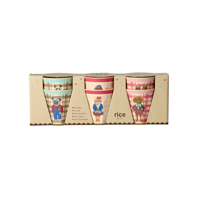 Nous craquons complètement pour ces imprimés dessinés par Nathalie Lété. Le chat élégant, l’écureuil qui danse et le panda amoureux d’un tournesol sont tous imprimés sur les 6 petits gobelets en mélamine de ce coffret. La mélamine est durable et idéale au quotidien grâce à sa solidité et à sa facilité de nettoyage – super pratique pour les enfants comme pour les adultes ! Veuillez noter que cet article n’est pas conçu pour un usage au micro-ondes.