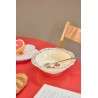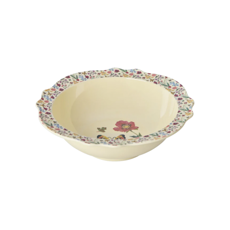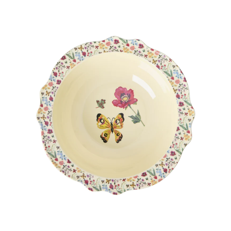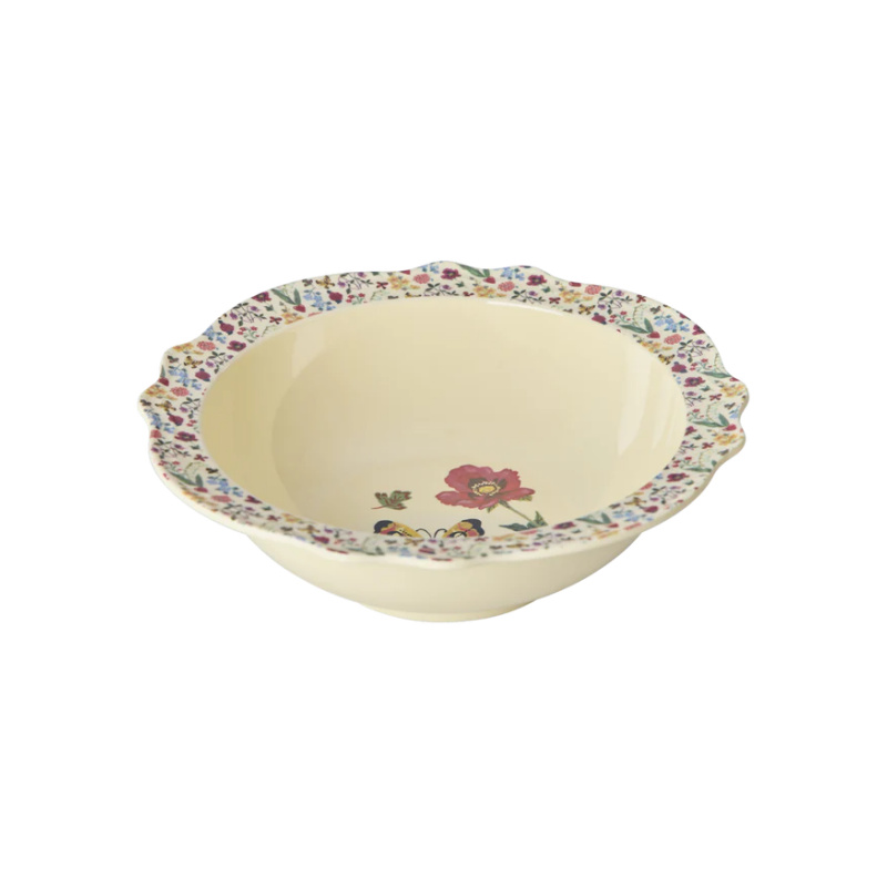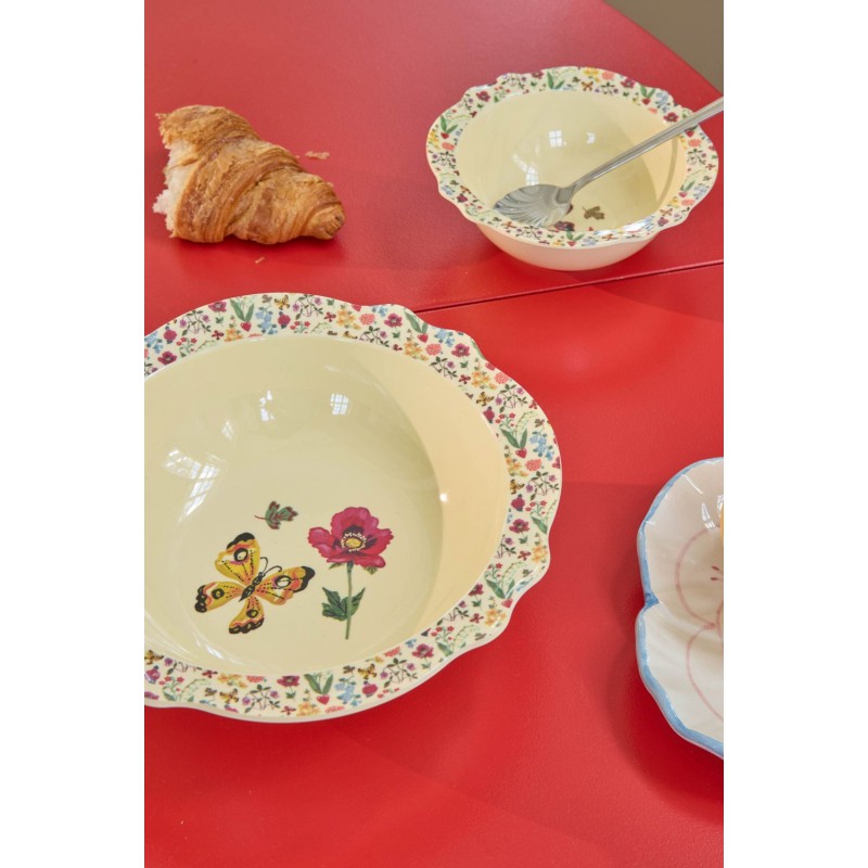 Nous sommes complètement fous de cette assiette creuse ! Elle a été conçue en collaboration avec Nathalie Lété et est inspirée de pièces vintage. Le papillon jaune et la jolie bordure fleurie la rendent parfaite pour une salade, quelques frites ou des bonbons. Elle est fabriquée en mélamine, un matériau durable et idéal au quotidien grâce à sa solidité et sa facilité de nettoyage. Veuillez noter que cet article n’est pas conçu pour un usage au micro-ondes.