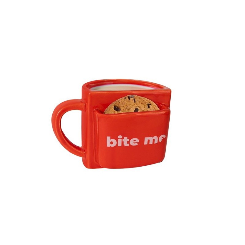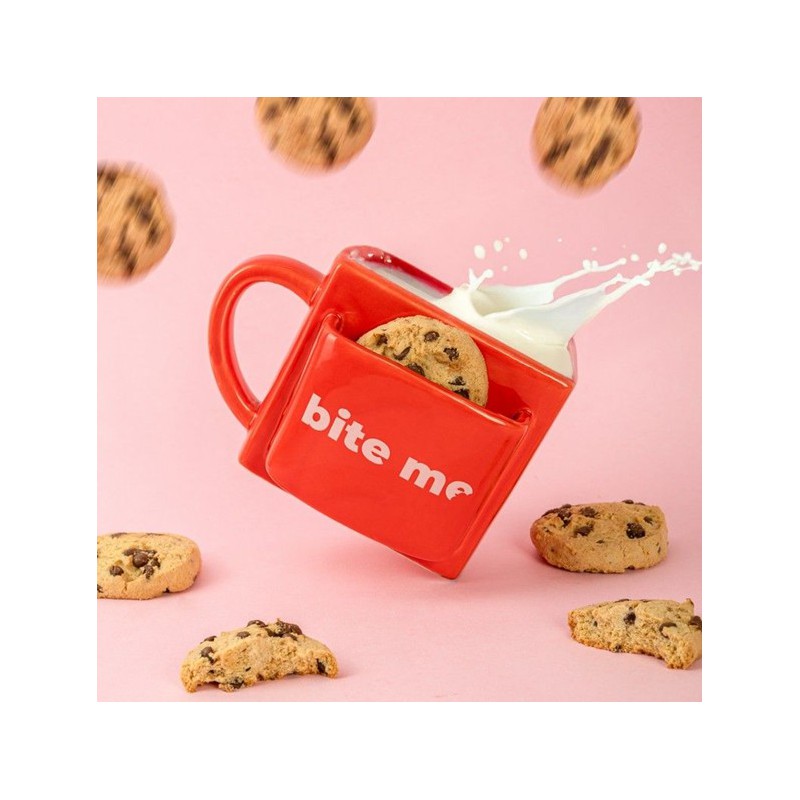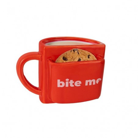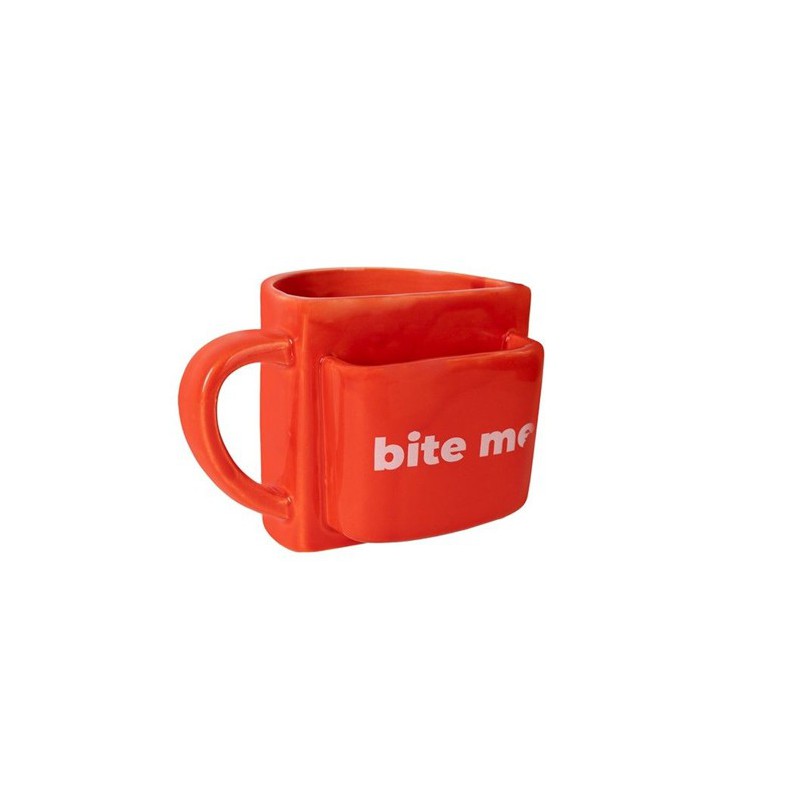 Avec sa contenance de 316 ml, cette tasse rouge ornée du message « Mords-moi » est idéale pour bien commencer la journée avec un café, un thé ou un chocolat chaud et faire le plein d'énergie (et le sourire !) ☕.