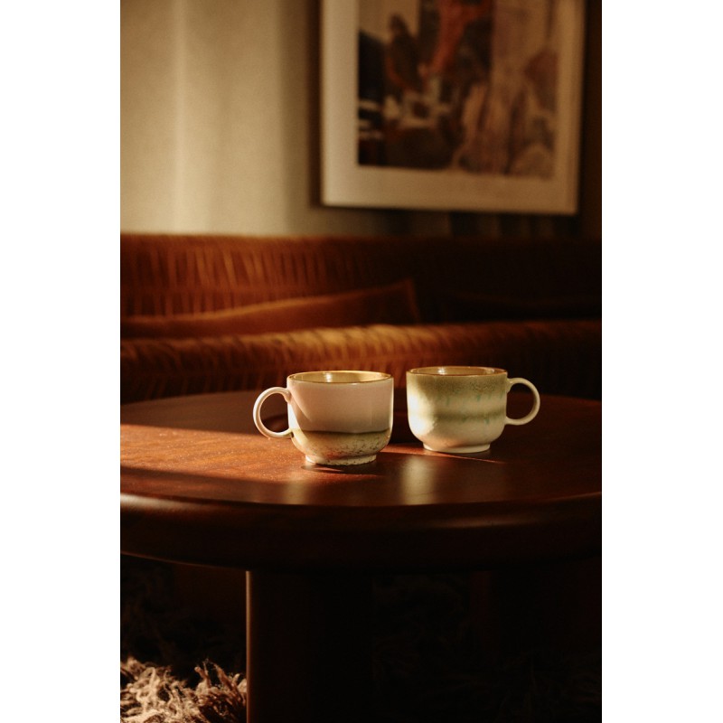 La céramique des années 70 s'inspire de cette décennie exaltante : sa finition à base naturelle évoque les côtes sauvages. Alliant formes emblématiques et nouveautés, la collection séduira les amateurs de simplicité brute.
