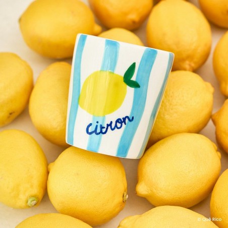 Égayez chaque pause-café ou thé avec les tasses en céramique Valentina de Qué Rico. Conçues en Belgique et peintes à la main avec de joyeuses illustrations de fruits et des motifs à rayures ludiques, ces tasses colorées apportent une touche de gaieté à votre quotidien. Chaque pièce allie le charme méditerranéen au savoir-faire artisanal, ce qui rend chaque tasse unique. Parfaites pour les amateurs de café, de thé et tous ceux qui apprécient une vaisselle gaie et colorée.