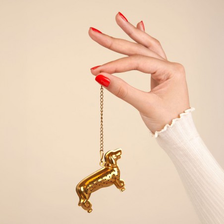Coucou Suzette ne cesse jamais de décliner leur teckel porte-bonheur ! Le voici en version boule à thé toute dorée, avec sa laisse pour ne pas qu’il ne se perde dans son mug. Ce fidèle compagnon est prêt à accueillir toutes nos tisanes et thés préférés !