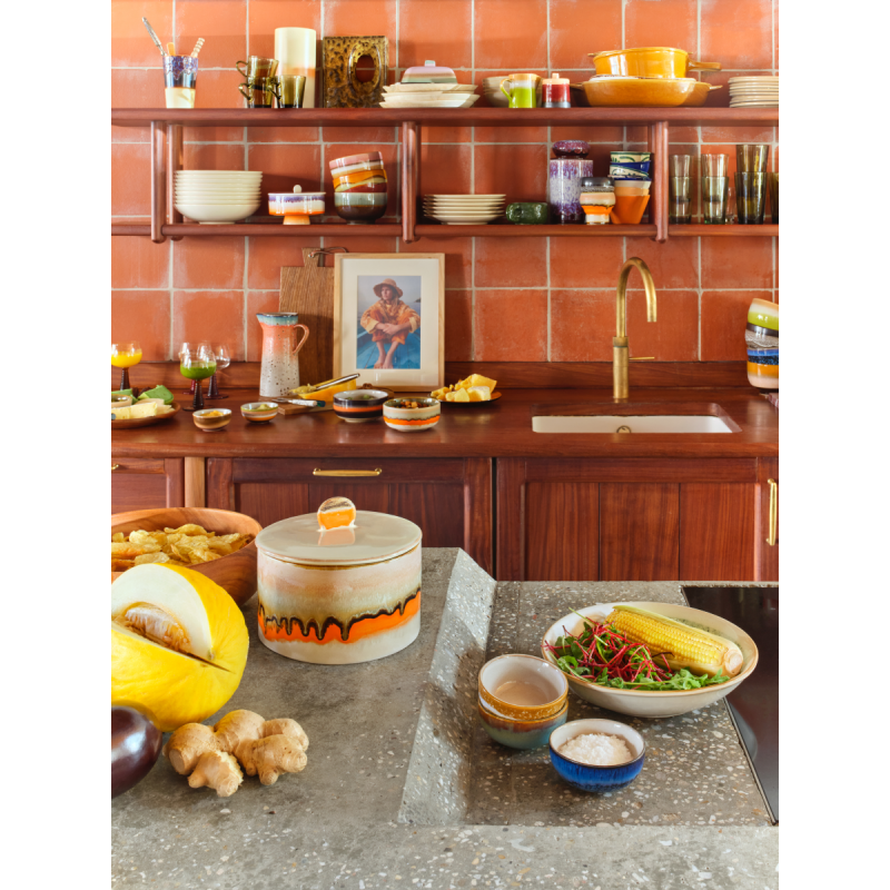 Biscuits, bonbons, pâtisseries maison ou même une trousse à couture… Au fil des ans, les boîtes à biscuits ont servi à tout. Heureusement, les finitions les plus colorées se trouvent sur les boîtes à biscuits en céramique des années 70. Faites un bond dans le passé et rendez-vous chez vos grands-parents !