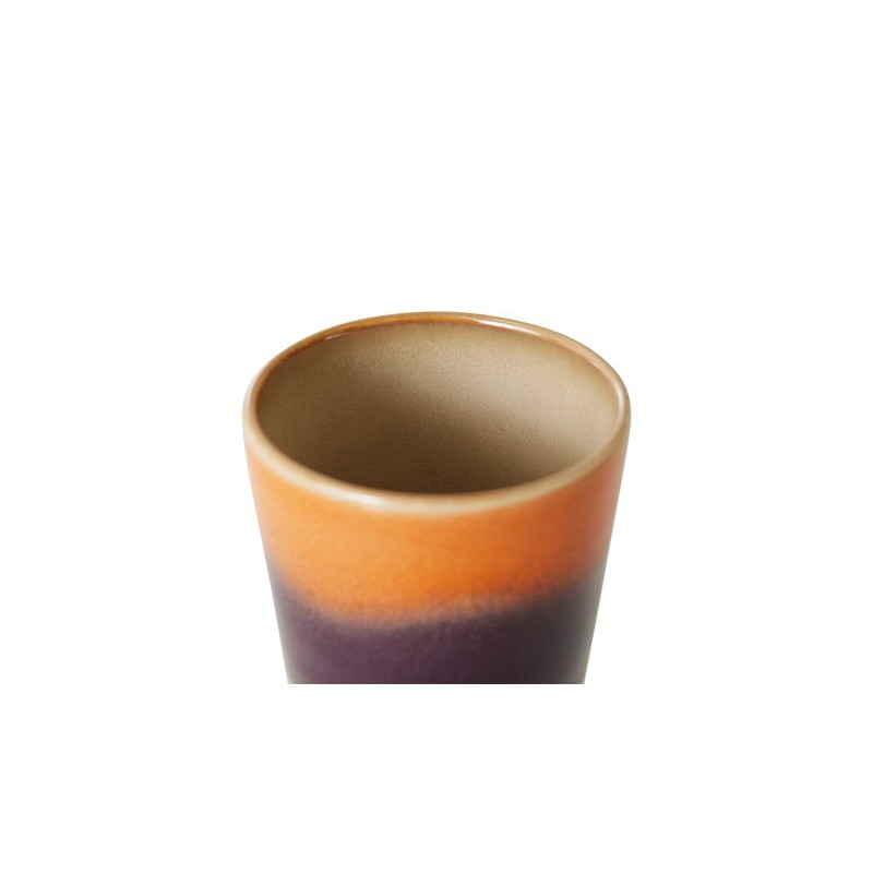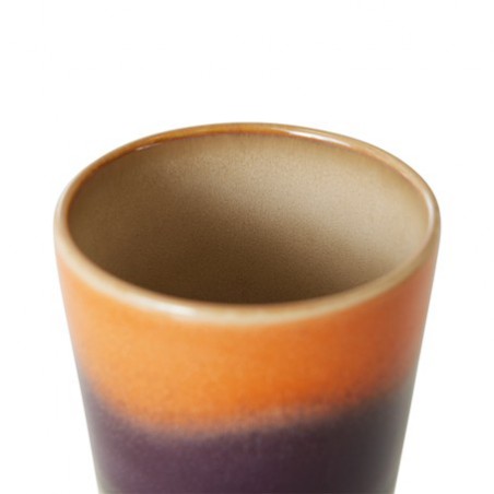 Quand il s’agit de thé, plus on est de fous, plus on rit. Alors, amateurs de thé, notez : avec 460 ml, nos tasses ont la plus grande capacité de toutes nos tasses. Grâce aux éléments terreux et aux couleurs naturelles, c’est la gamme la plus détendue de la collection céramique rétro des années 70. Les compositions de couleurs passionnantes et les surfaces texturées et finies à la main rendent chaque pièce unique.